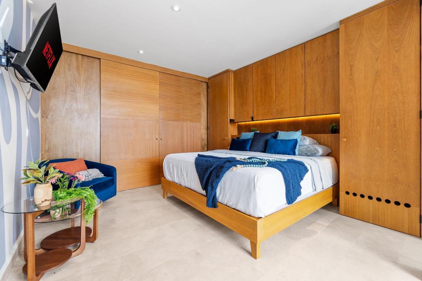 One-Bedroom Apartment with Bay View. The air-conditioned apartment has 1 bedroom and 2 bathrooms with a shower and a hairdryer. The well-equipped kitchen features a refrigerator, kitchenware, a microwave and a toaster. Boasting a balcony with sea views, this apartment also features a coffee machine and a flat-screen TV. The unit has 1 bed.