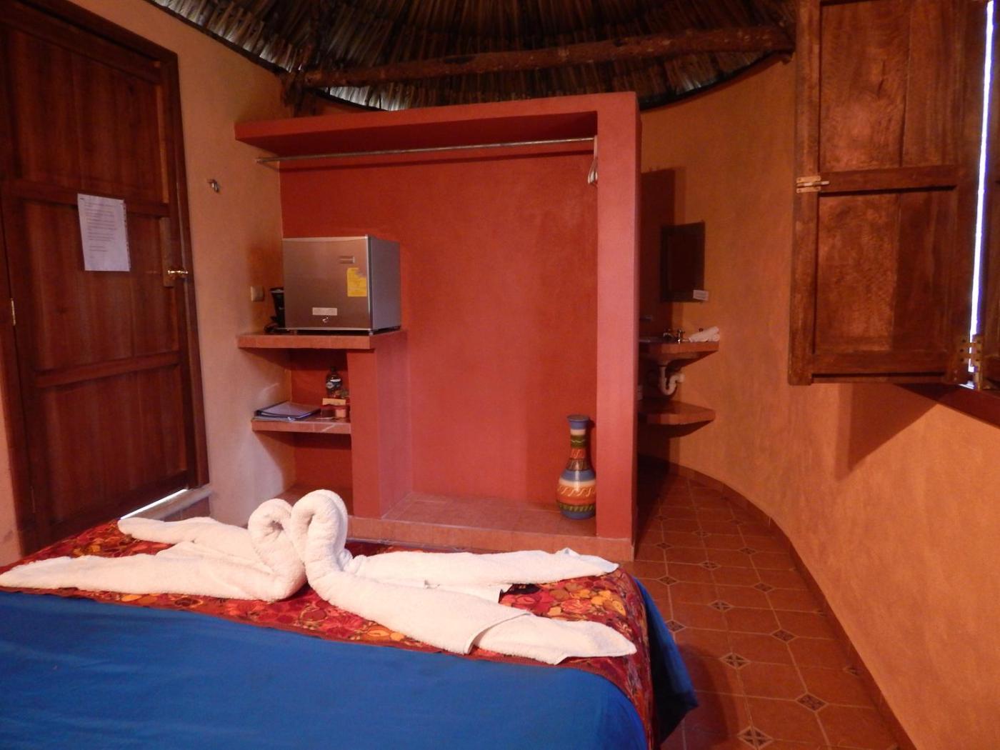 Standard King Room. Set in a typical Mayan-style thatched house, this room offers a balcony with views of the gardens and pool. It has a modern tiled bathroom with hot water. ;