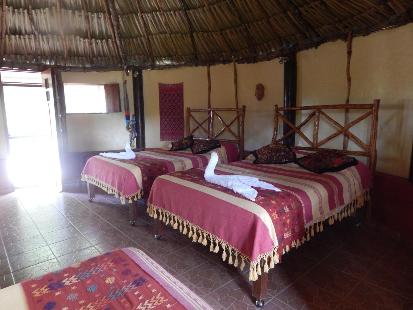 Family Bungalow. Set in a stone cabin with a thatched roof, this bungalow offers views of the Uxmal countryside. It has 2 double beds and a single bed, a fan and a small dining area. It also include a fridge, bottled water and coffee maker. ;